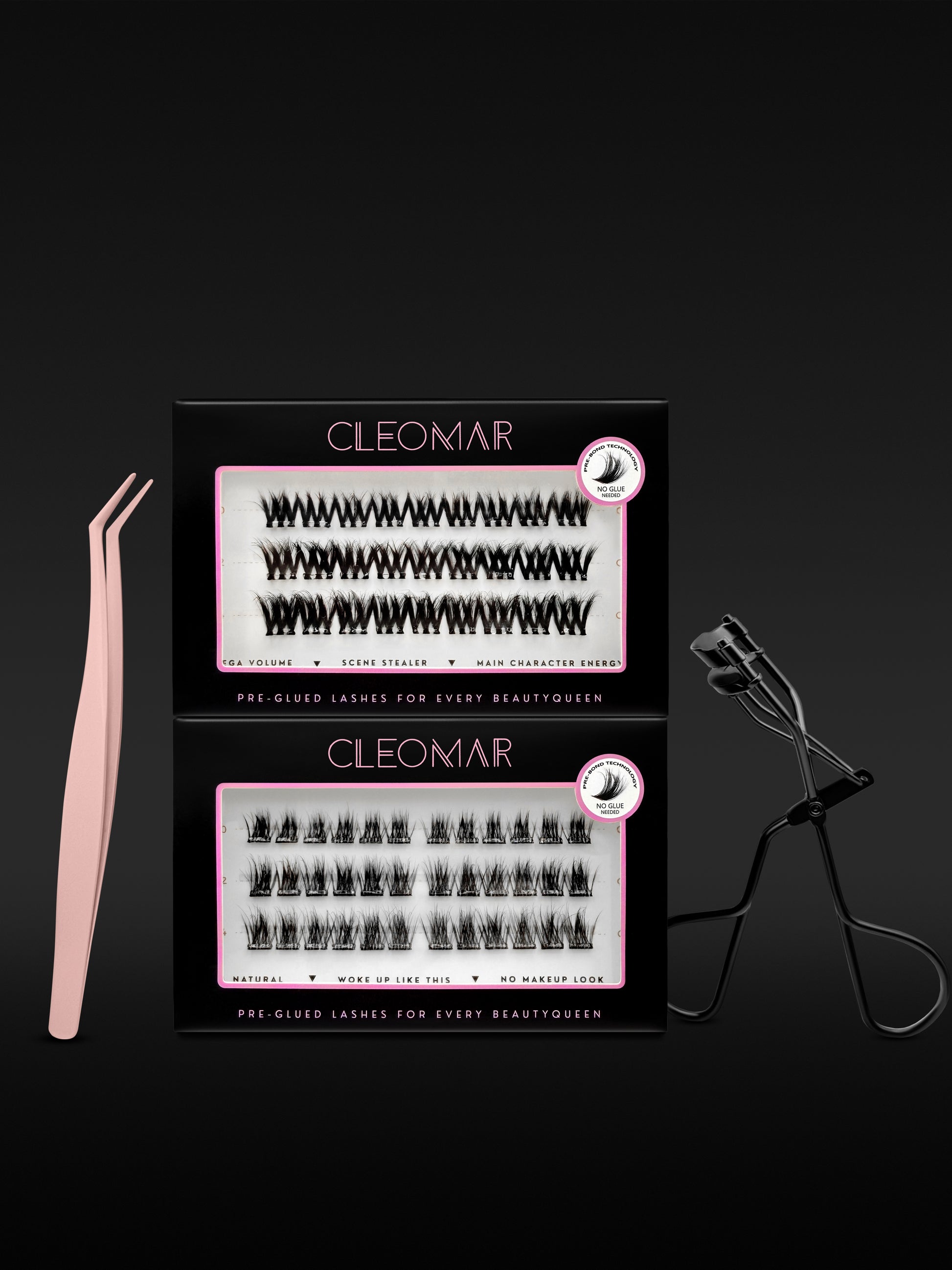 Enjoy two styles of pre-glued Press On Lashes in one complete set – including an anti-sticky tweezer and a professional eyelash curler. The Press On Lashes Set is the perfect solution for anyone who wants to create beautiful, full lashes in just minutes – completely hassle-free.